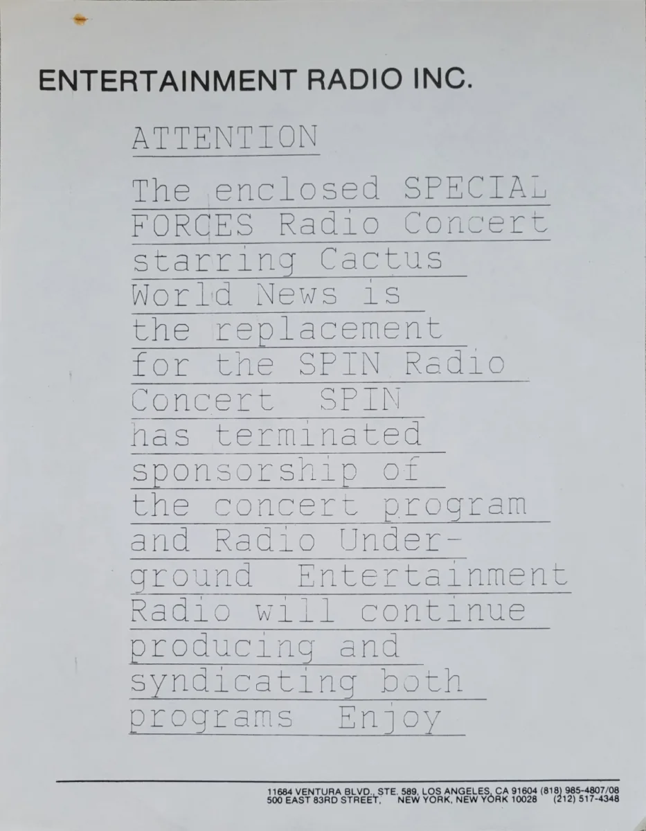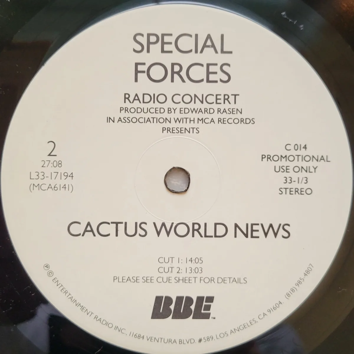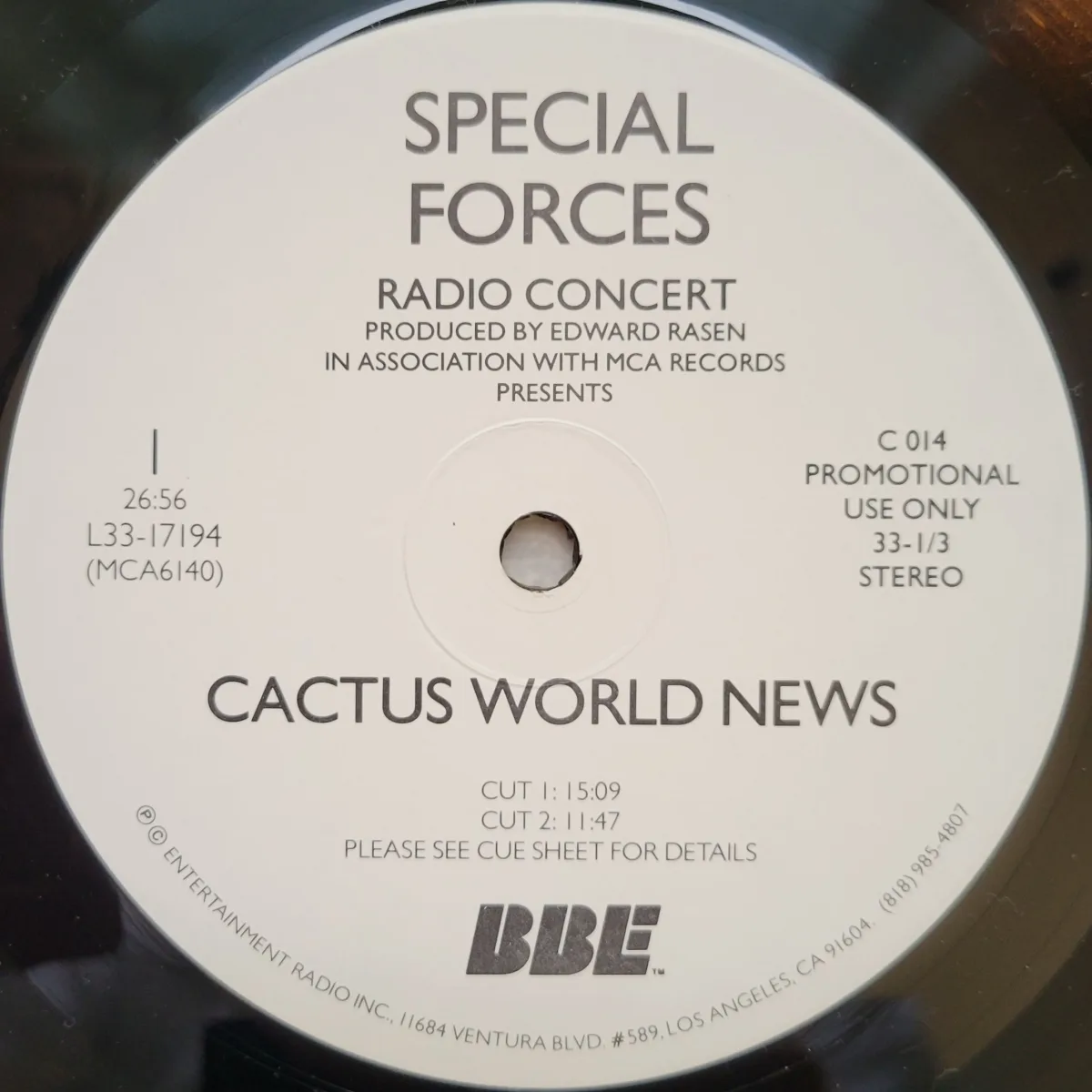 My copy—via A1 Records in NYC—is marked with WDFH, a public radio station in Westchester. Not sure if the ???!!! is expressing the question of whether to file this under Cactus World News, or just reacting to the name of the band.