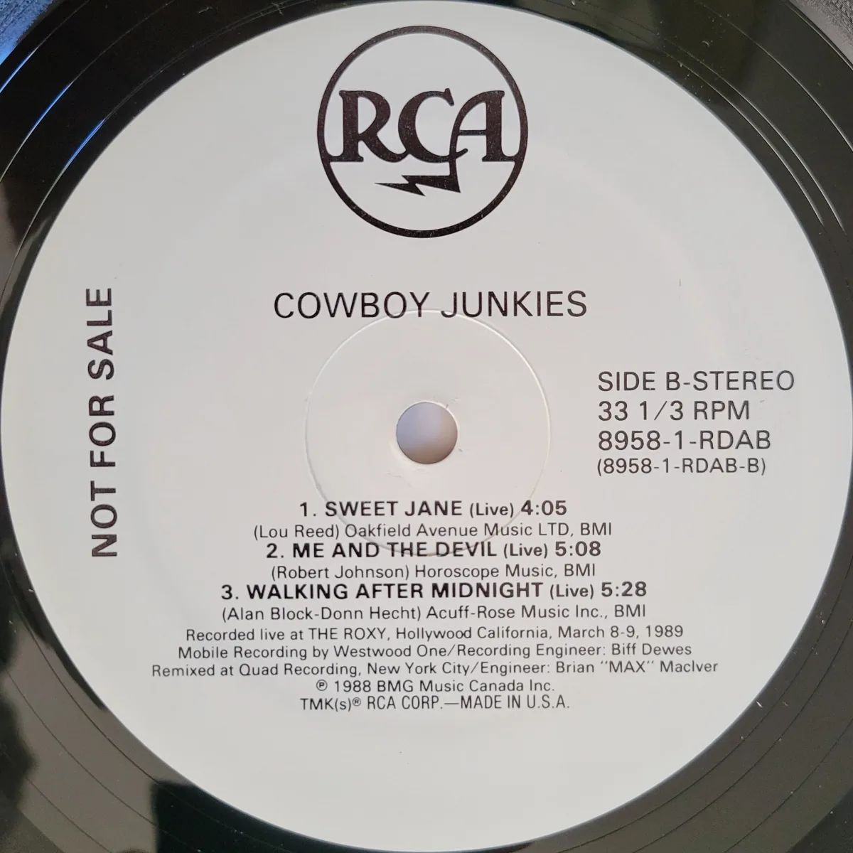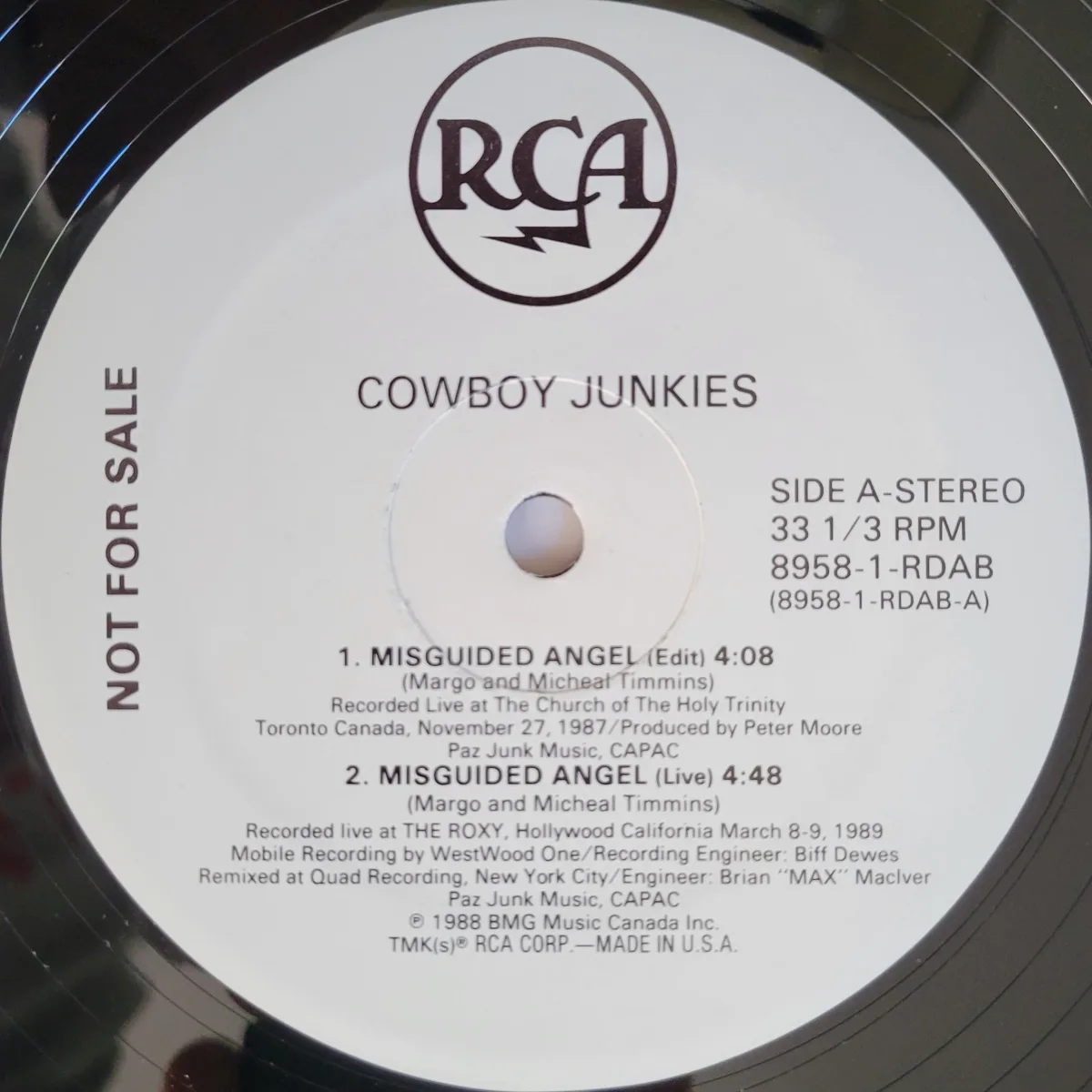 Margo, Peter, and MIchael Timmons with Alan Anton were Cowboy Junkies. This EP came out alongside the Trinity Session album, with the lead single “Misguided Angel” from that session at the Church of the Holy Trinity in Toronto, plus four live tracks recorded at the ROXY in Hollywood.