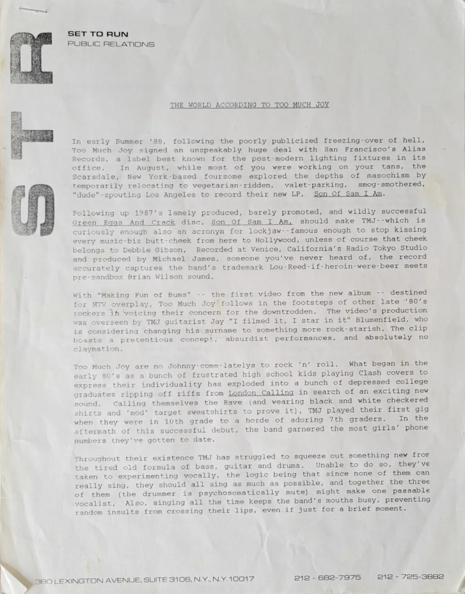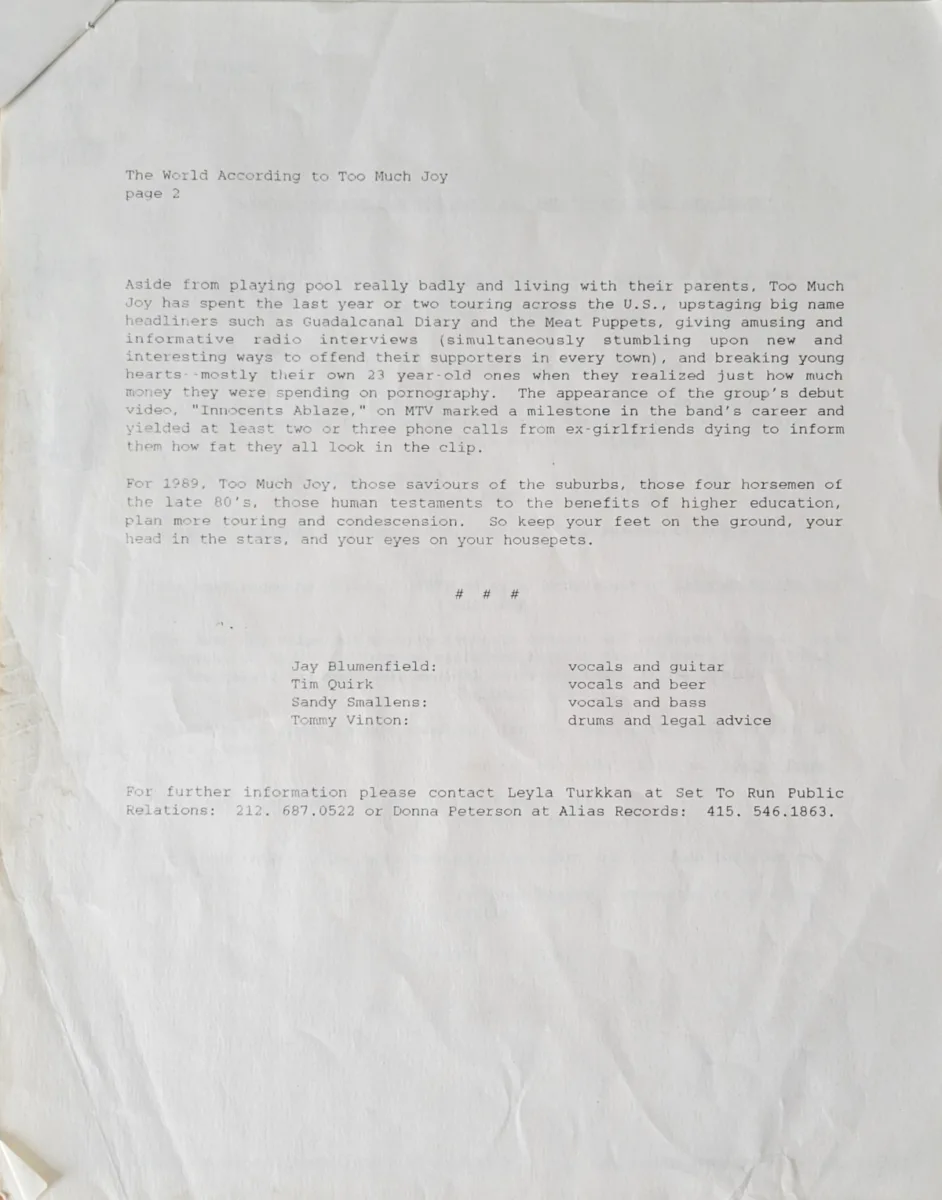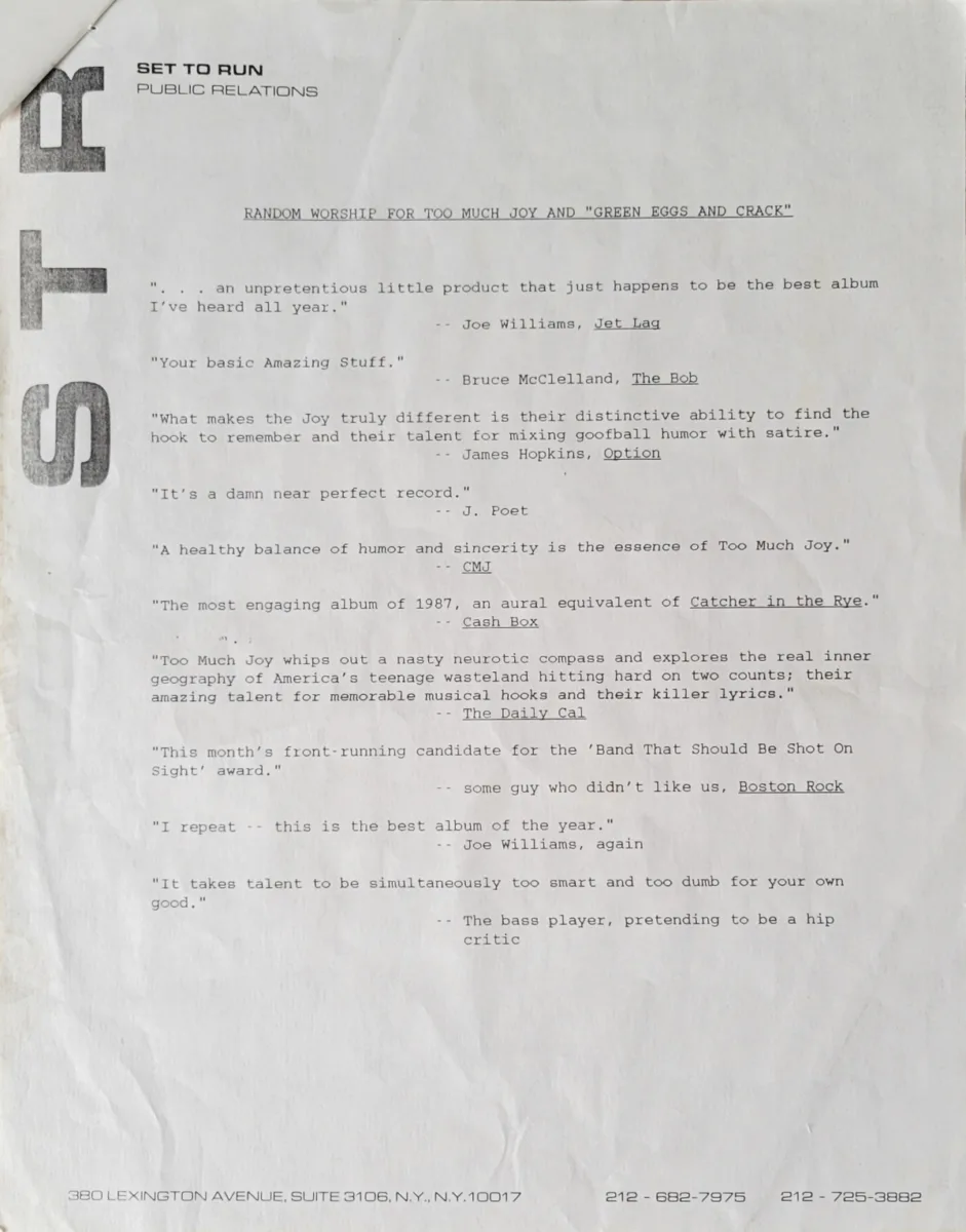 It also had the original promo letters from the PR firm “Set To Run” including gems from the “ironic PR” era:
