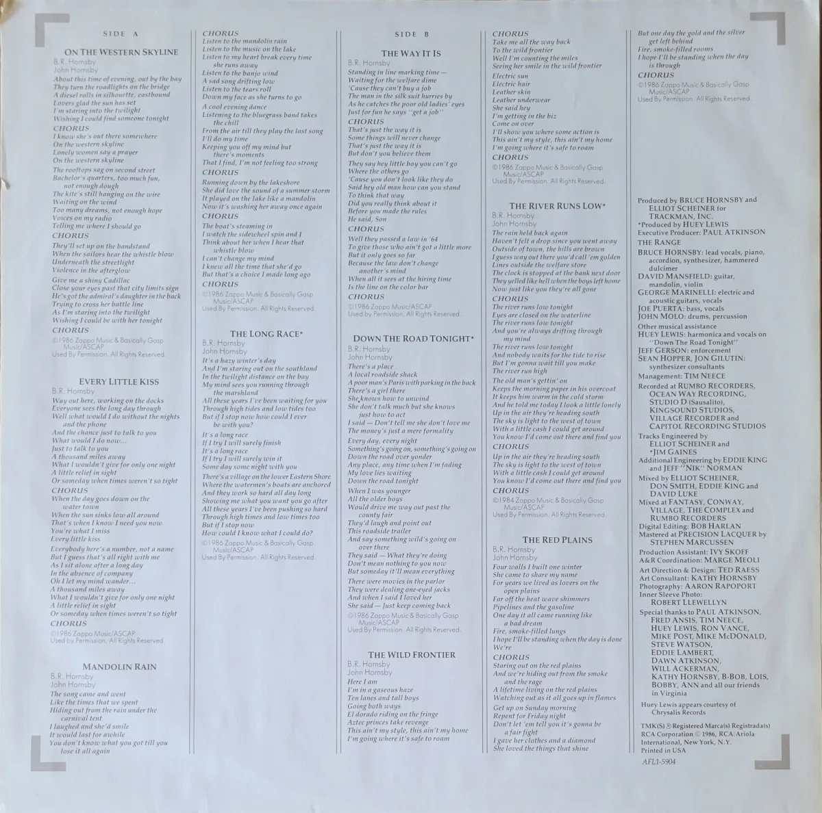 The Range included David Mansfield, George Marinelli, Joe Puerta, and John Molo – Huey Lewis guests on “Down the Road Tonight” and produced three tracks.