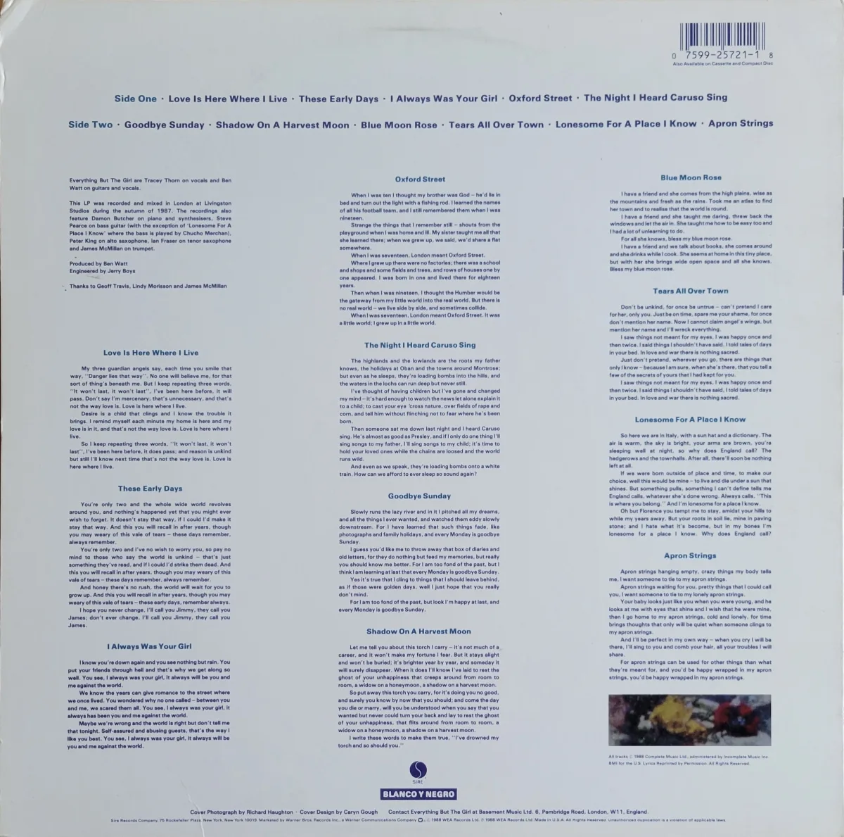 This was the fourth EBTG album, released in early 1988 on Sire / Blanco y Negro Records. There’s a 2012 double CD reissue with bonuses but that has not been issued on vinyl. (The LP was reissued by Music on Vinyl in 2016 but as a single LP).