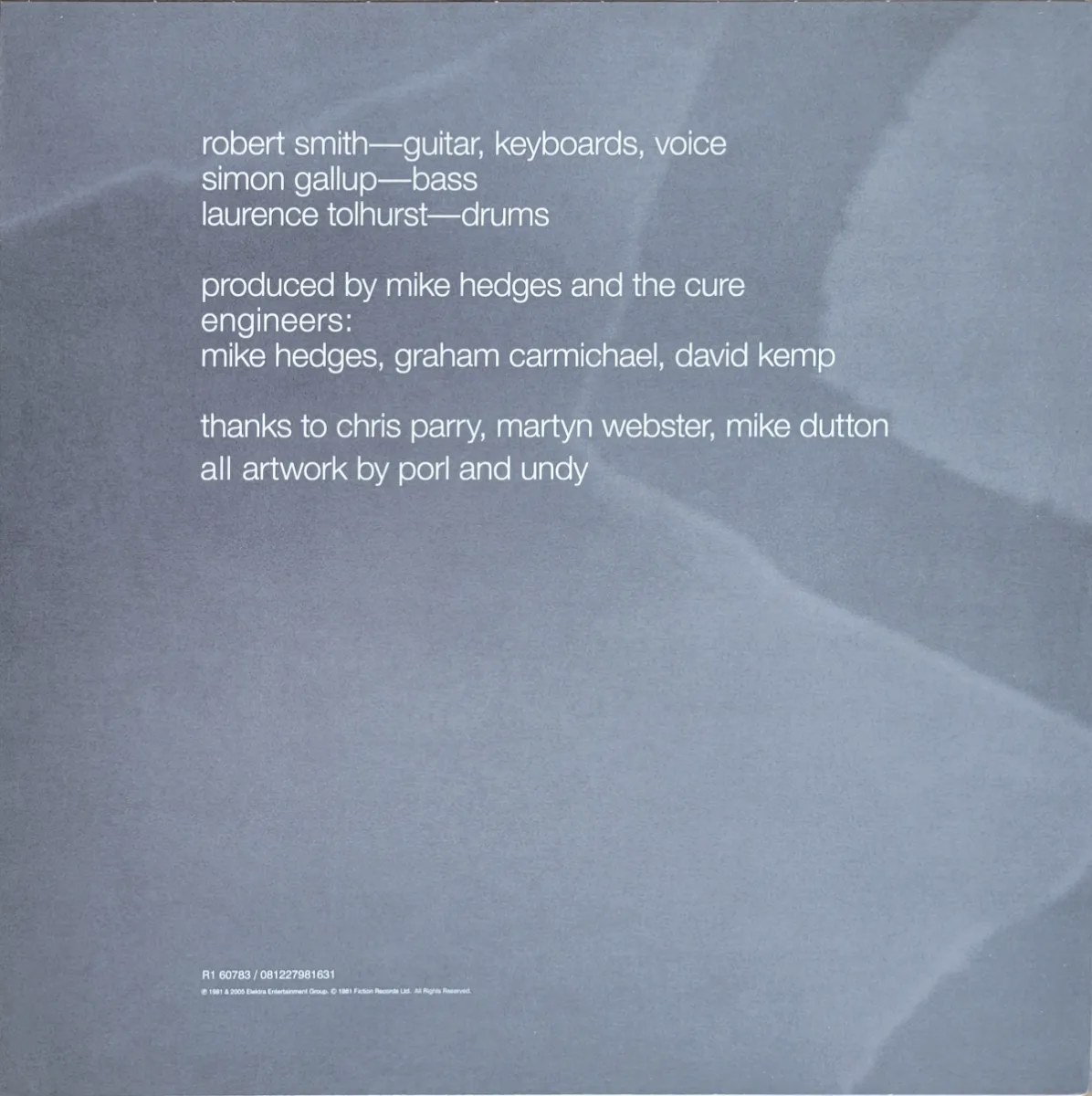 The Cure’s third full length, between Seventeen Seconds and Pornography, released in 1981 on Fiction records in the UK, and later in the US on Elektra in 1988.
