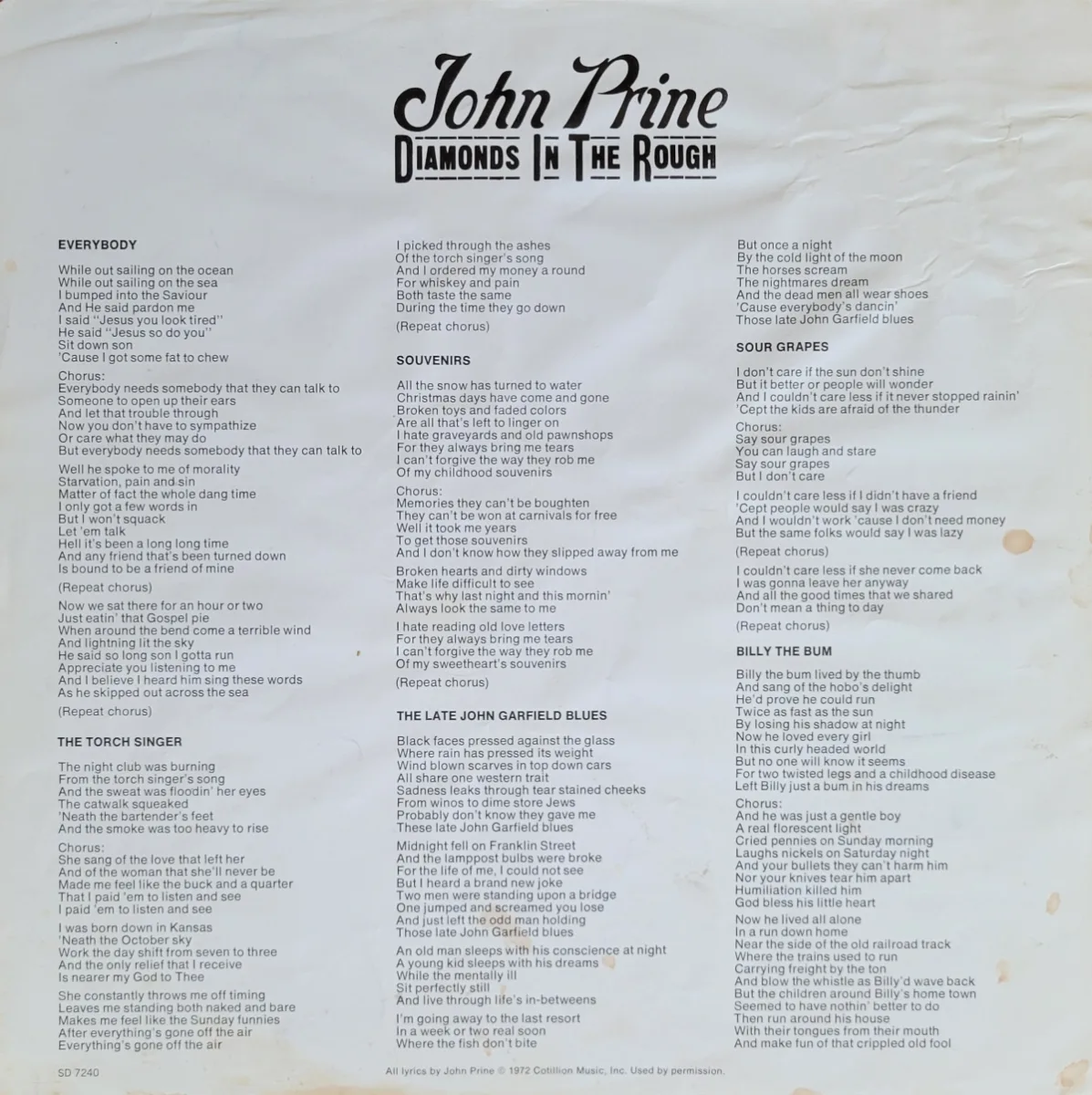 This was Prine’s sophomore album, following the self-titled John Prine. Prine is joined by Steve Goodman, David Bromberg, Steve Burgh, and Dave Prine.