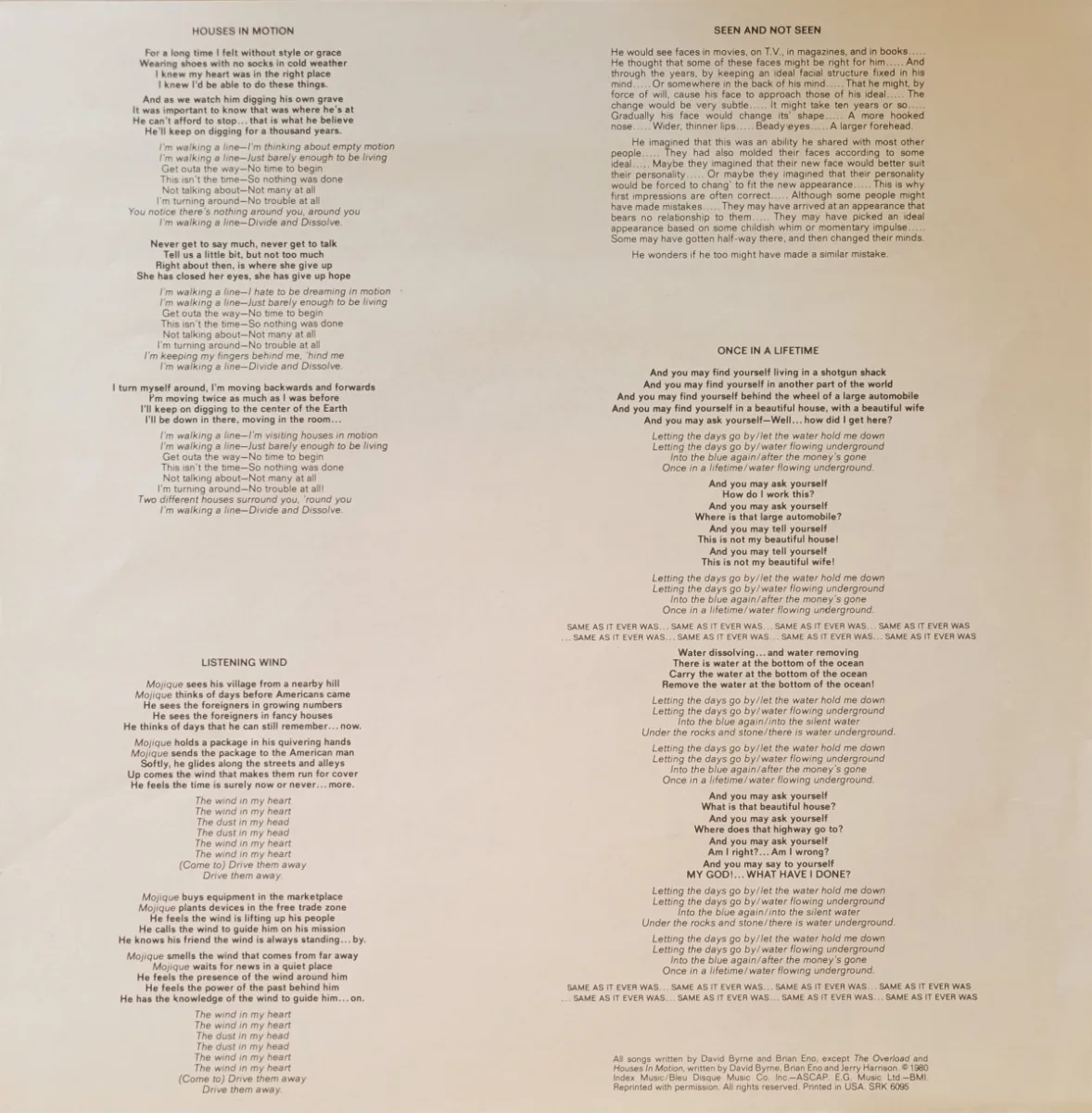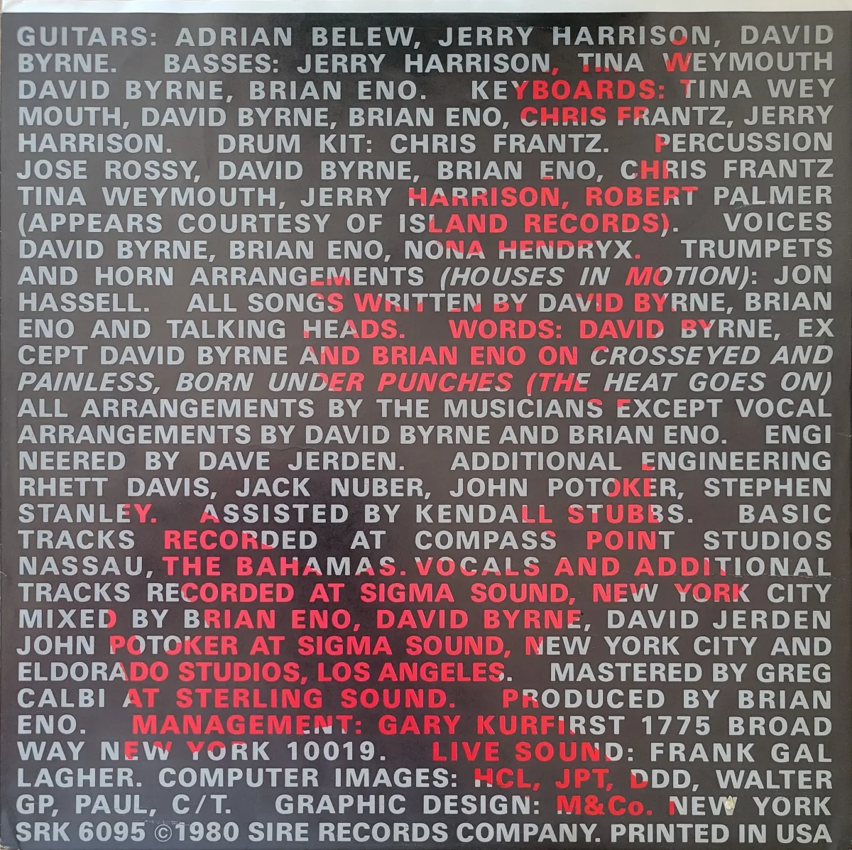 Fourth studio LP from Talking Heads, and the third produced by Brian Eno.