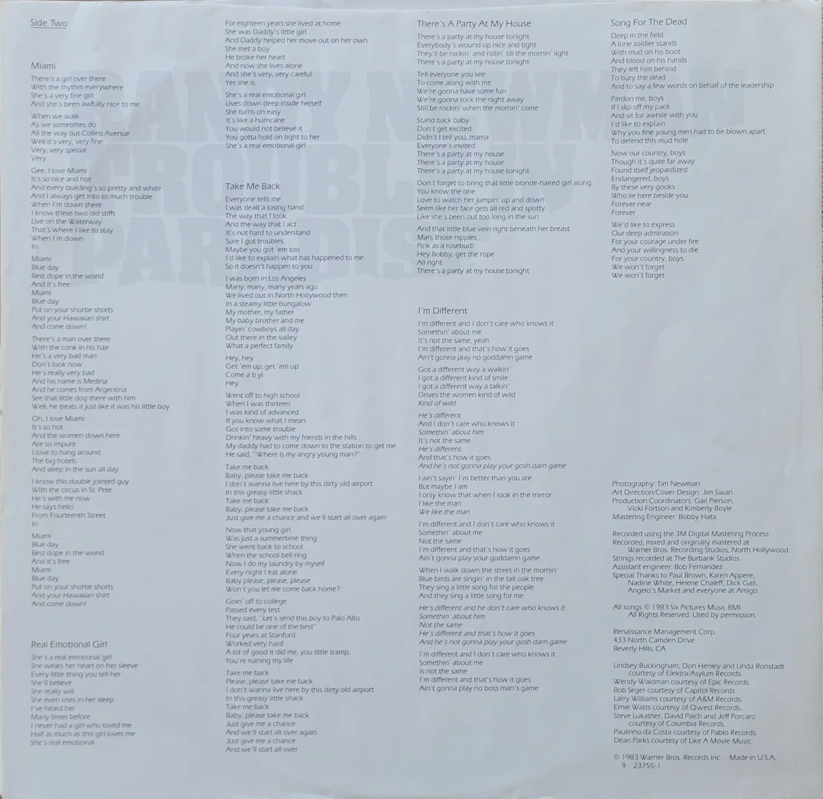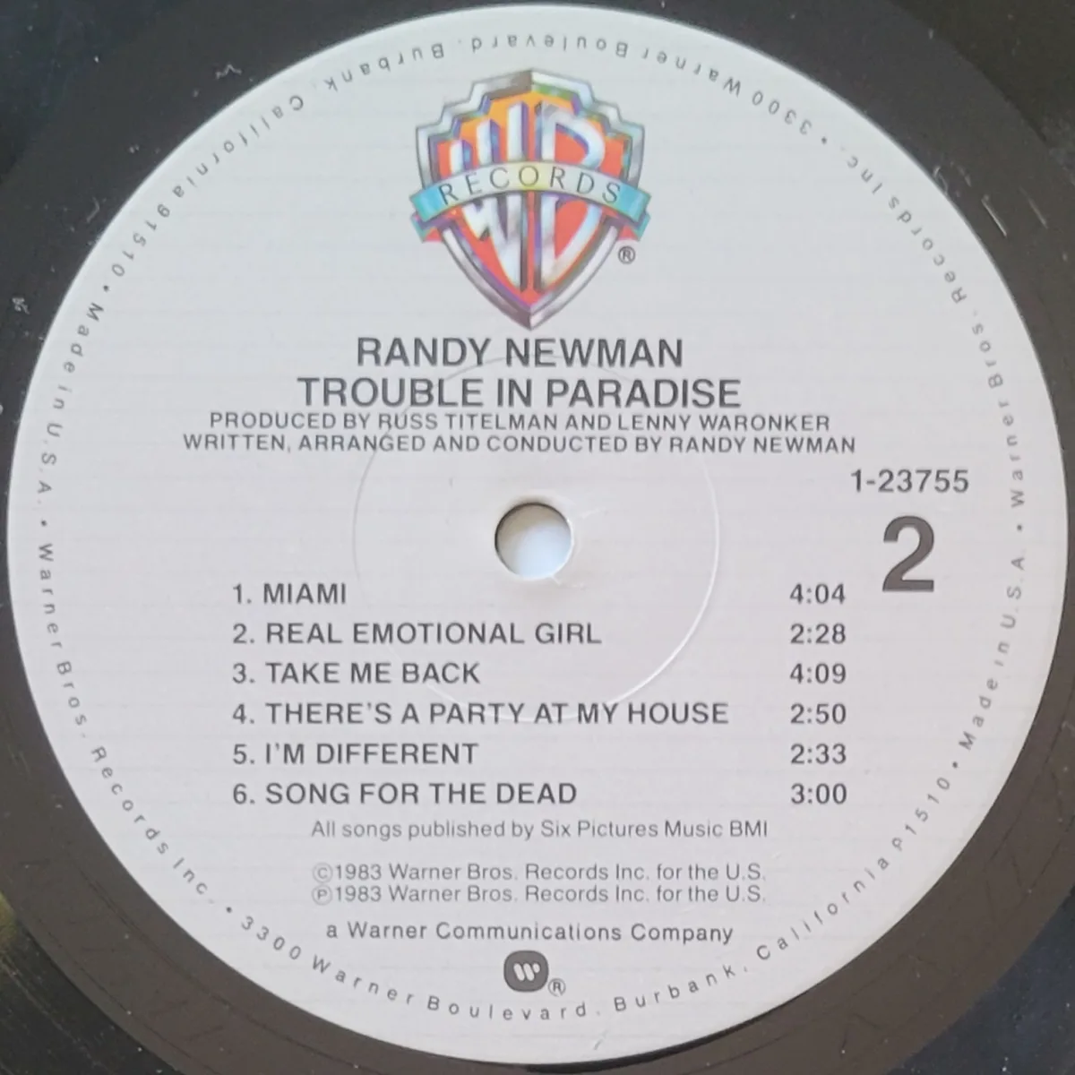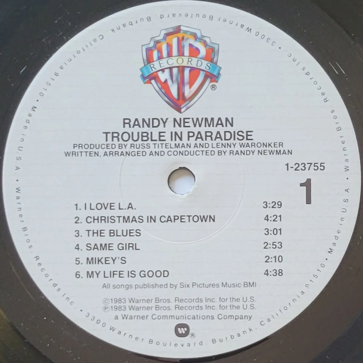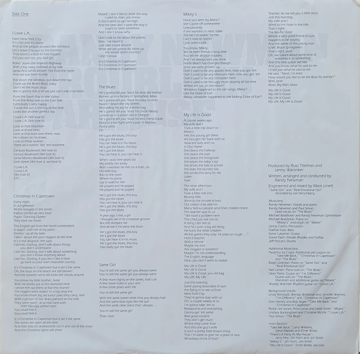 Seventh studio album for satirist/songwriter Randy Newman, including “I Love L.A.” and “The Blues” which was a duet with Paul Simon. Produced by Lenny Waronker and Russ Titelman and recorded in North Hollywood.