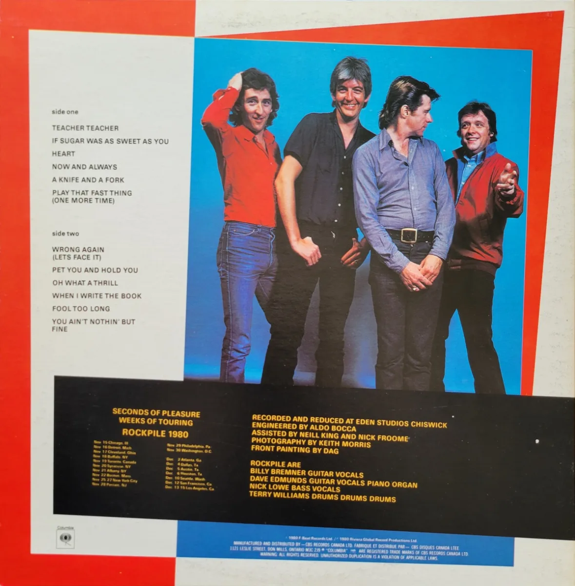 This is Rockpile’s one and only studio album released under their name in 1980. The band includes Dave Edmunds, Nick Lowe, Billy Bremner and Terry Williams – though other material from Rockpile’s repertoire would come out under the name of Dave Edmunds or Nick Lowe solo albums.