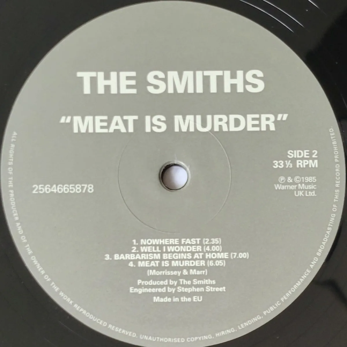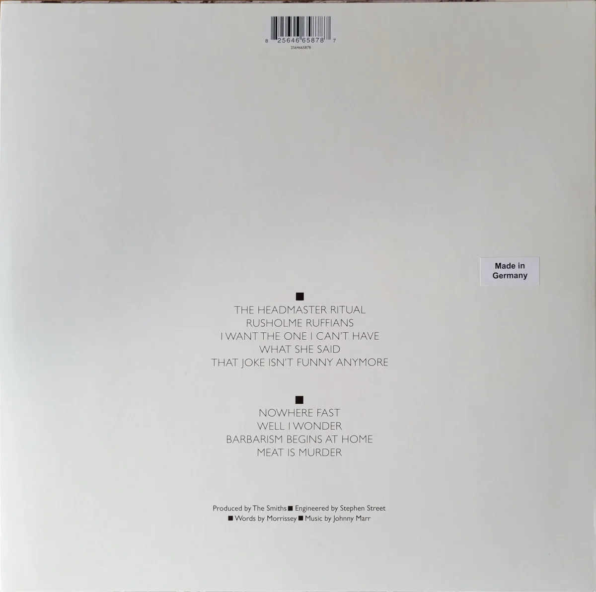 My copy—via Joe’s Albums in Worcester MA—is a 2012 reissue pressed at Optimal which restores the UK tracklist and omits “How Soon is Now?”