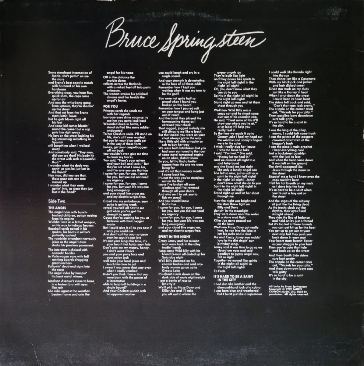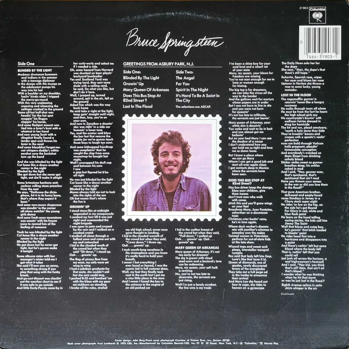 This was Springsteen’s debut album, out in January 1973, produced by Mike Appel and Jim Cretecos. Redportedly “Blinded By The Light” and “Spirit in the Night” were cut after Clive Davis rejected the original album tracklist.