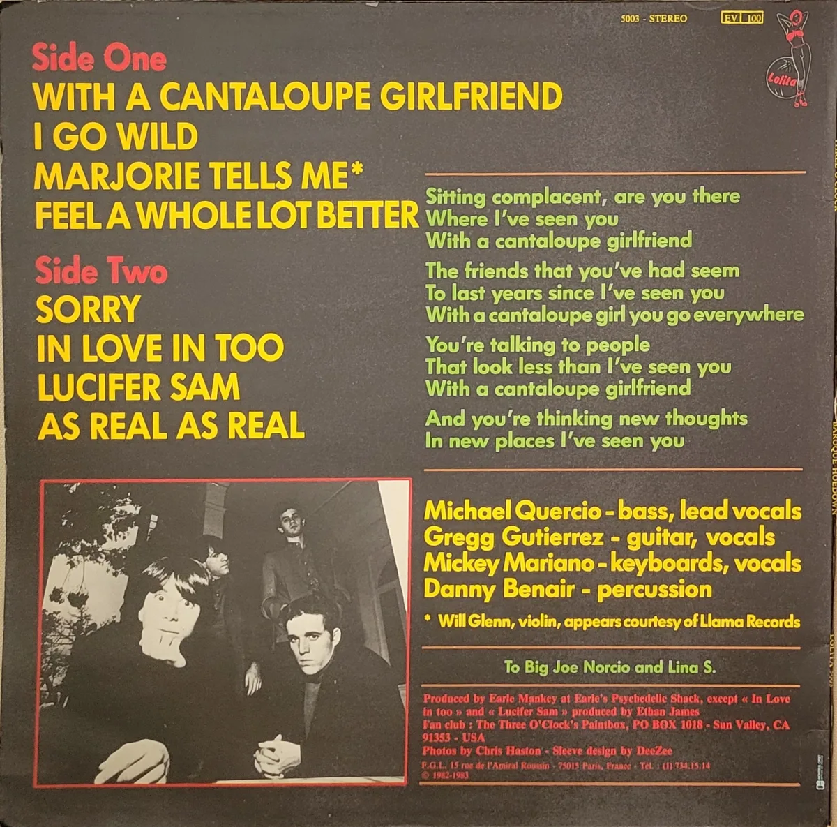 This copy, via a private sale, is a French pressing on Lolita – with 3 additional tracks not on the US EP: a cover of the Byrds “Feel a Whole Lot Better,” “In Love Too,” and a cover of Syd Barrett’s “Lucifer Sam.”