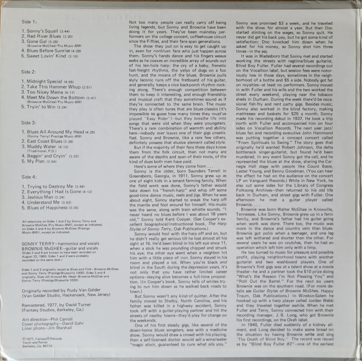 This 2xLP release is a reissue of two earlier albums: 1960’s Blues & Folk (sides 1 and 2) and 1961’s Blues All Around My Head (sides 3 and 4). Fantasy often put out these reissues as double LPs, as the earlier blues artists were being rediscovered again – good way to get the earlier material.