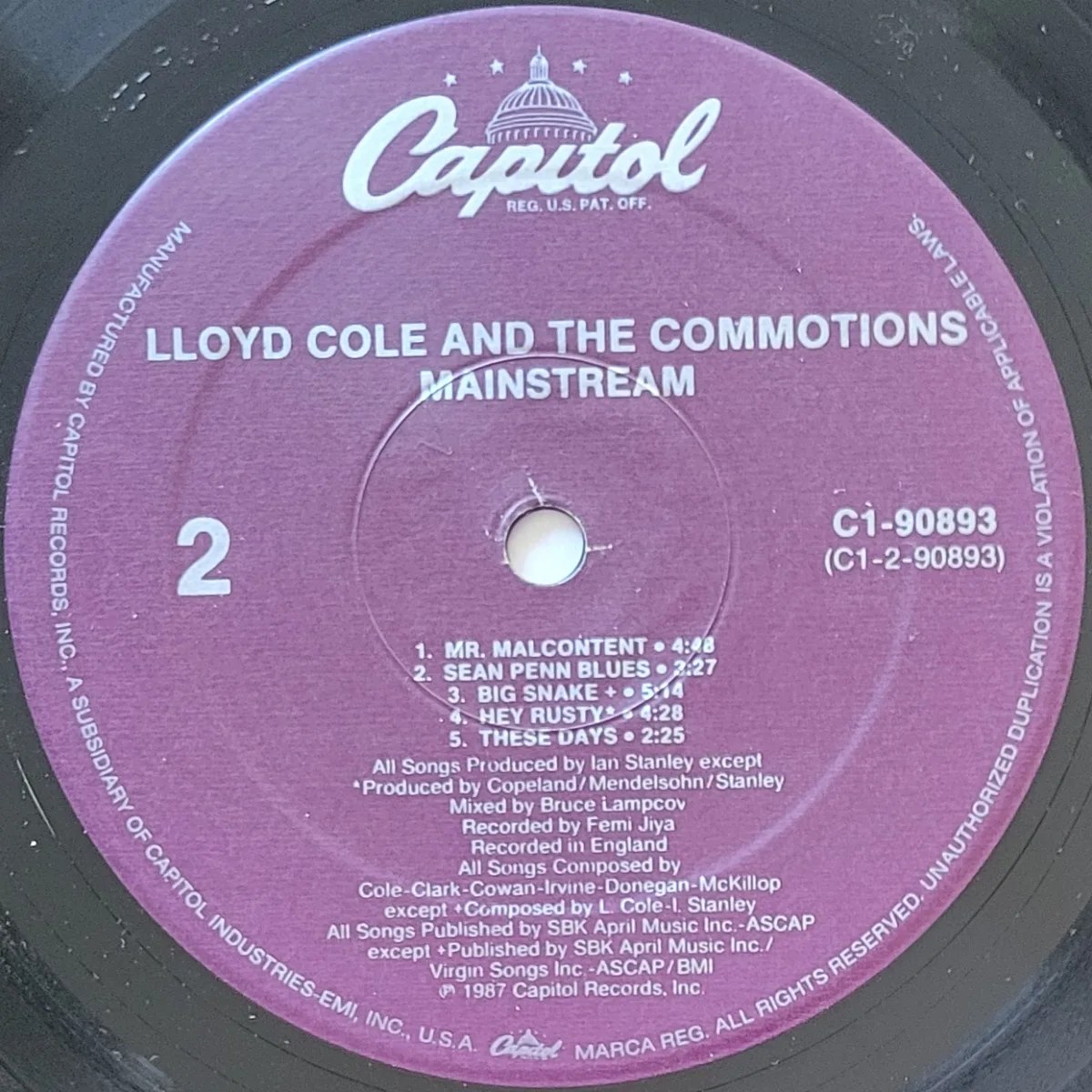 One track produced by Stewart Copeland, the rest by Ian Stanley. Well worth a listen if you liked Rattlesnakes or other Lloyd Cole.