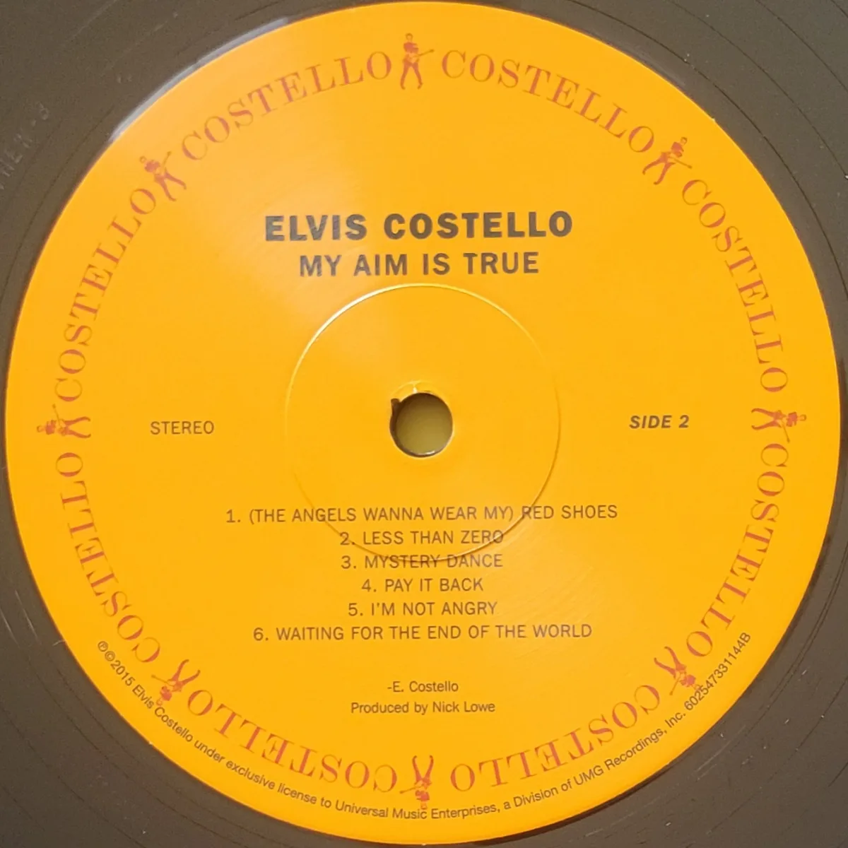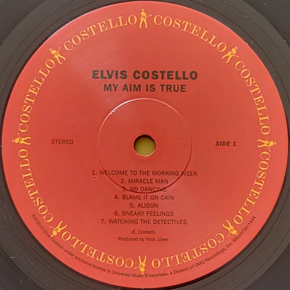 My copy—direct from the merch table at an Elvis Costello / Steve Nieve show—is a 2015 reissue on 180g vinyl by UMe on Columbia-style labels with “Costello” where Columbia would have been.