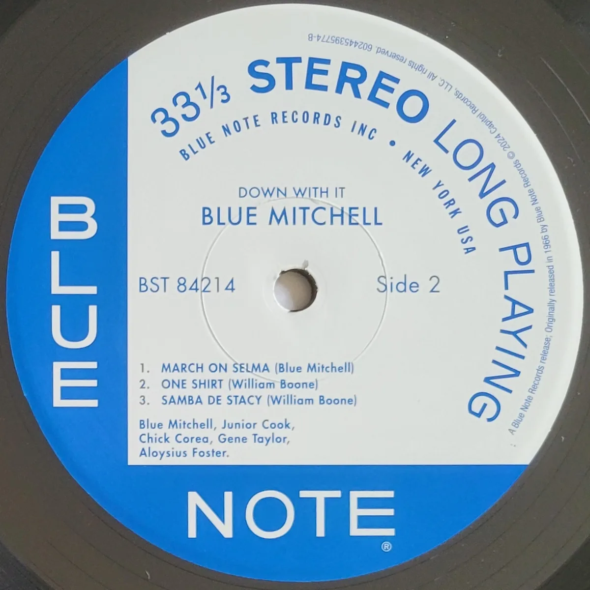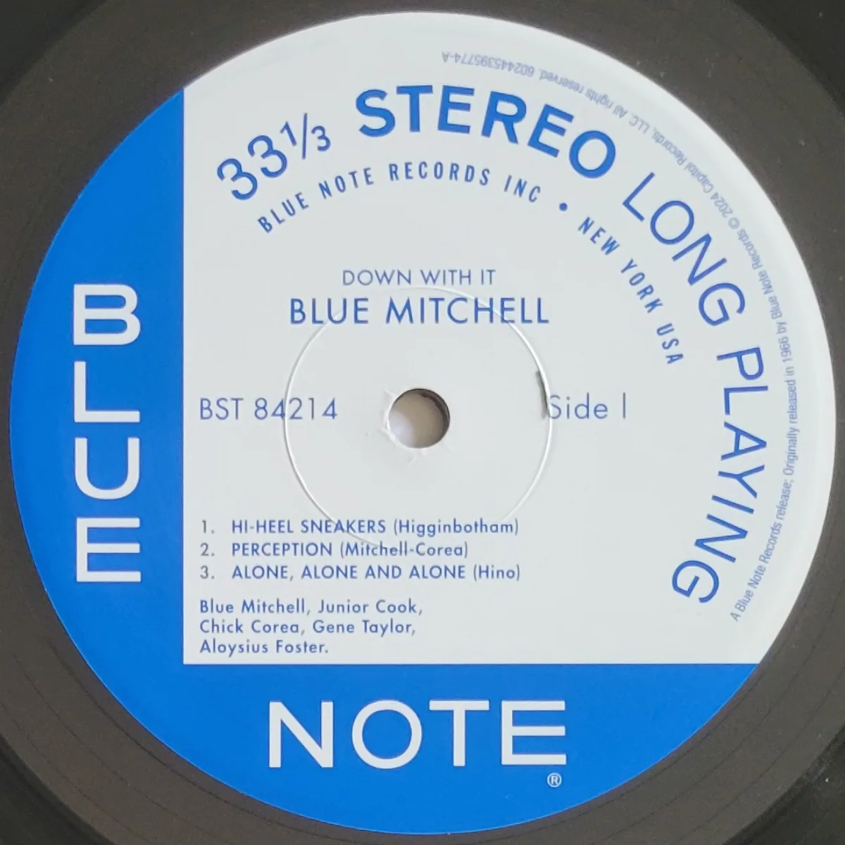 Another fantastic Blue Note jazz LP, this came out originally in 1966. It features Mitchell (trumpet) with Junior Cook (tenor sax), Chick Corea (piano), Gene Taylor (bass), and Aloysius Foster (drums), and was recorded at Van Gelder Studios in New Jersey.