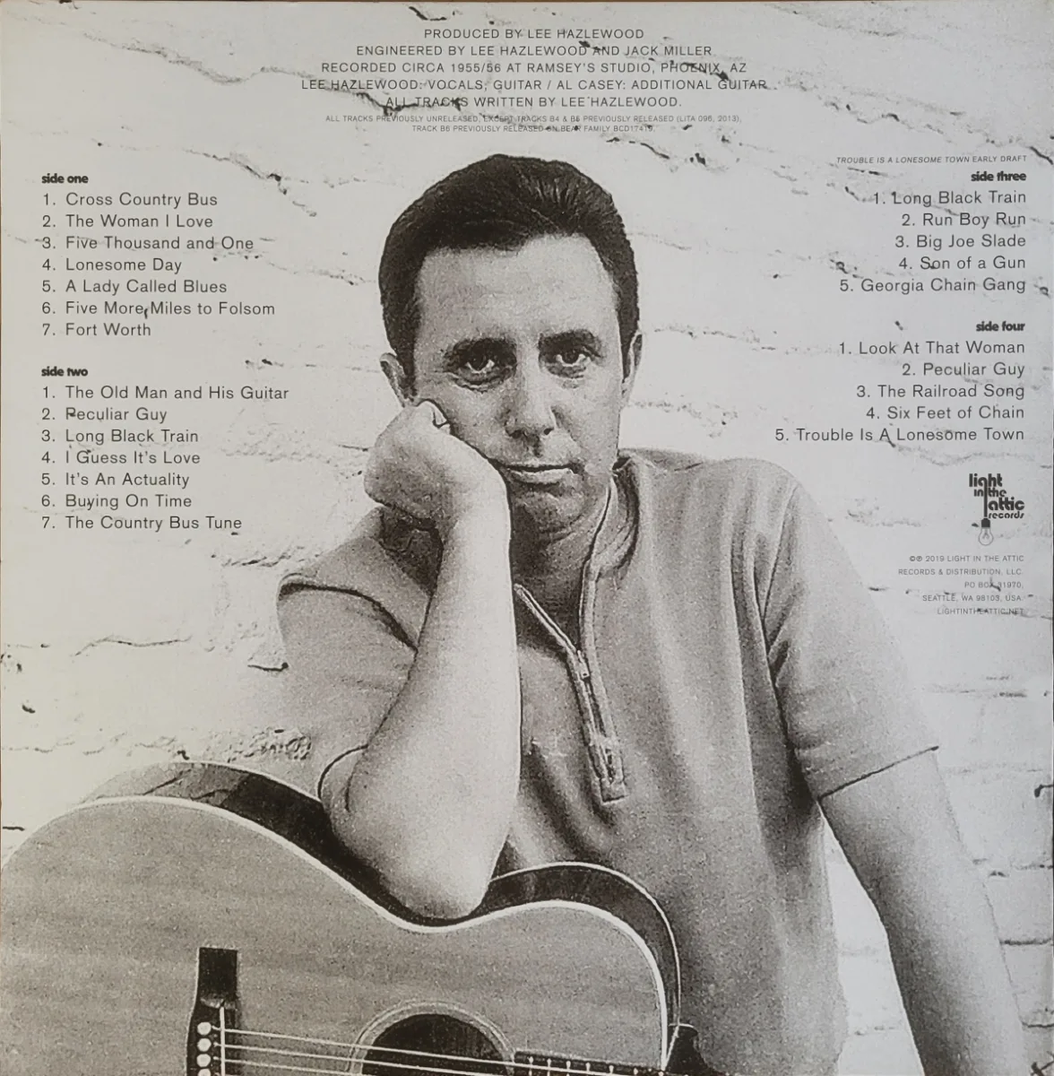 Recorded in 1955 and 1956 but not released until 2019 by Light in the Attic, the second LP here includes a draft of what became Trouble is a Lonesome Town, Hazlewood’s debut album from 1963.