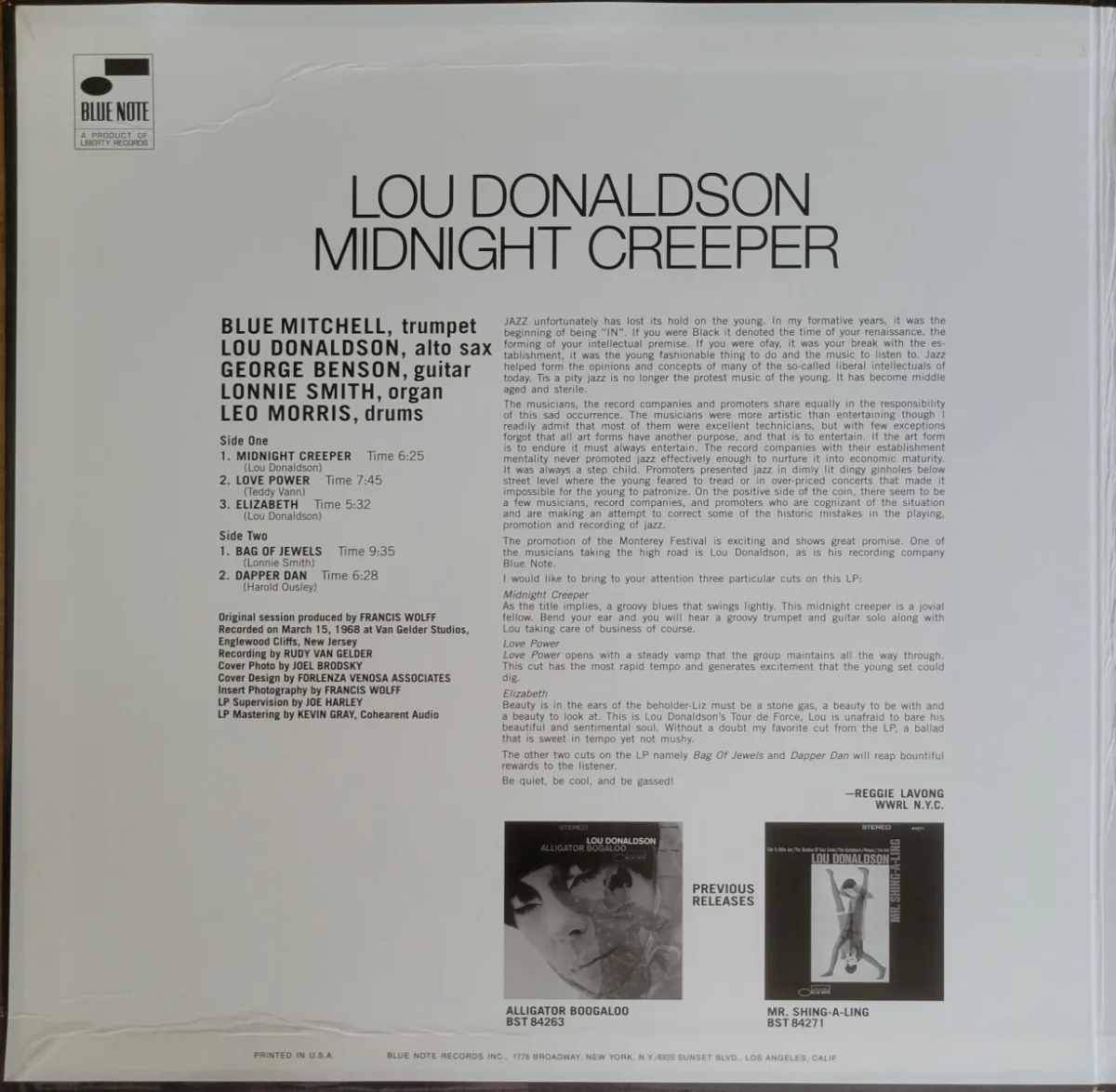 Donaldson joined here by Leo Morris (drums), George Benson (guitar), Lonnie Smith (organ) and Blue Mitchell (trumpet). Very groovy soul-jazz LP from late sixties Blue Note.