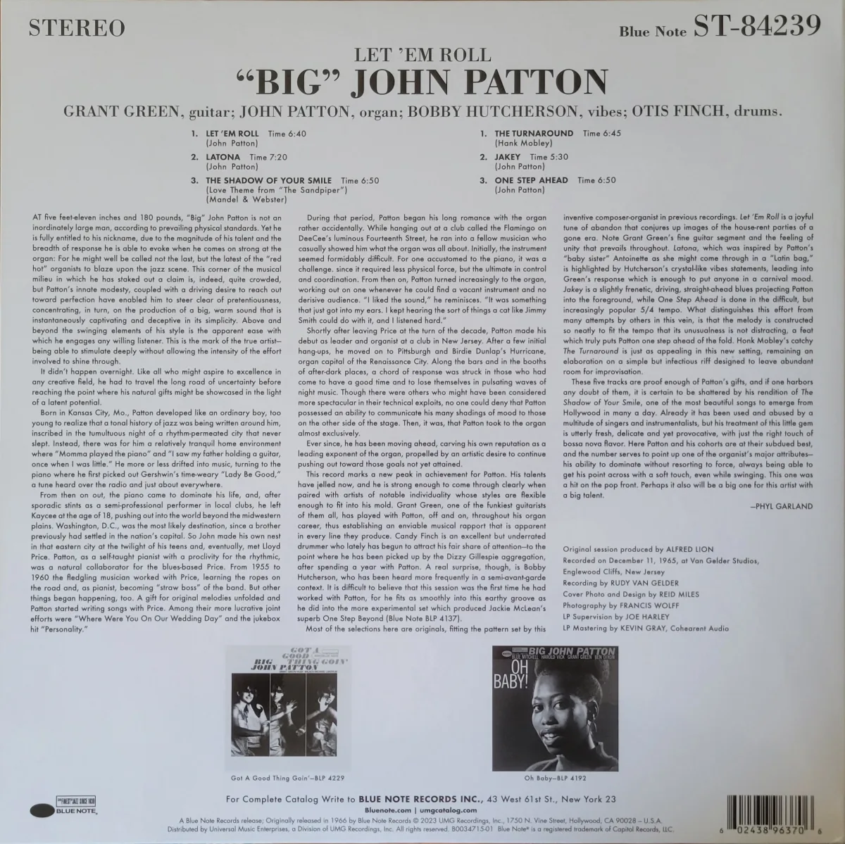 Patton joined by Otis Finch (drums), Grant Green (guitar), and Bobby Hutcherson (vibes), and recorded by Rudy Van Gelder in Englewood Cliffs, NJ. Fantastic Hammond B3 driven mid-sixties Blue Note jazz – can’t go wrong.