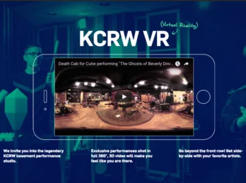 The fine folks at KCRW have introduced a VR app, which you can use with viewers like Cardboard and your Android or iOS phone, to view performances from…
