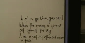 (via BoingBoing from back in September – yes, I’m that far behind) Excellent retelling/recasting of the Love Song of J. Alfred Prufrock into an even more modern idiom,…