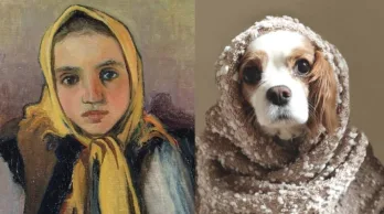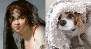 Finn getting in on the Getty Museum Challenge. Detail from Etude de Femme d’Aprés Nature, dit aussi Portrait de Madame Soustra, in the Louvre Dog, blanket. (Only used…