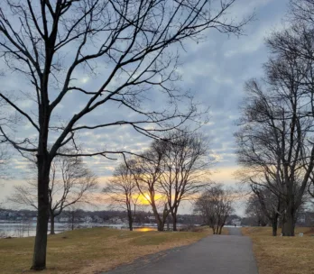 Sunrise over Marblehead this morning – view from Forest River Park in Salem, with some Swans in Salem Harbor