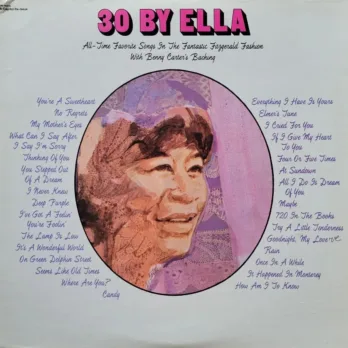 Ella Fitzgerald, 30 By Ella, 1968 on Capitol. Thirty songs in ~53 minutes, across six medleys. Music by Benny Carter’s “Magnificent Seven” – Capitol reissue from the 70s…